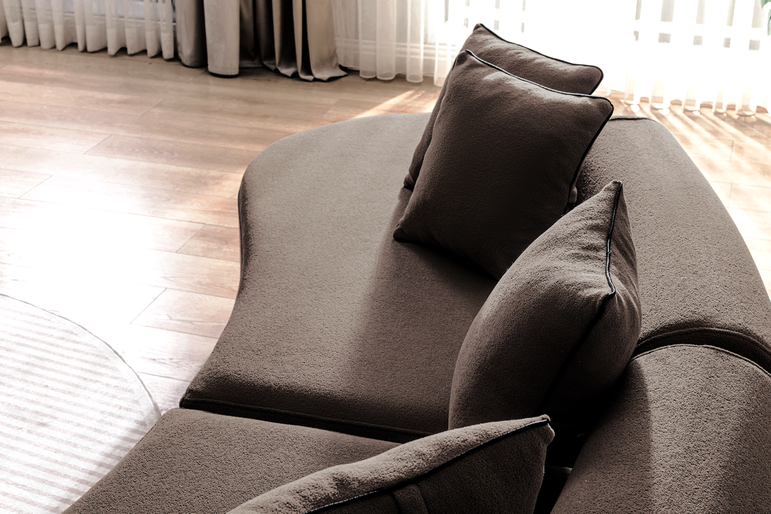 Crafted with luxurious fabric, this sofa offers a soft, cloud-like texture that adds a rich, sophisticated touch to any room, from modern apartments to cozy living spaces.