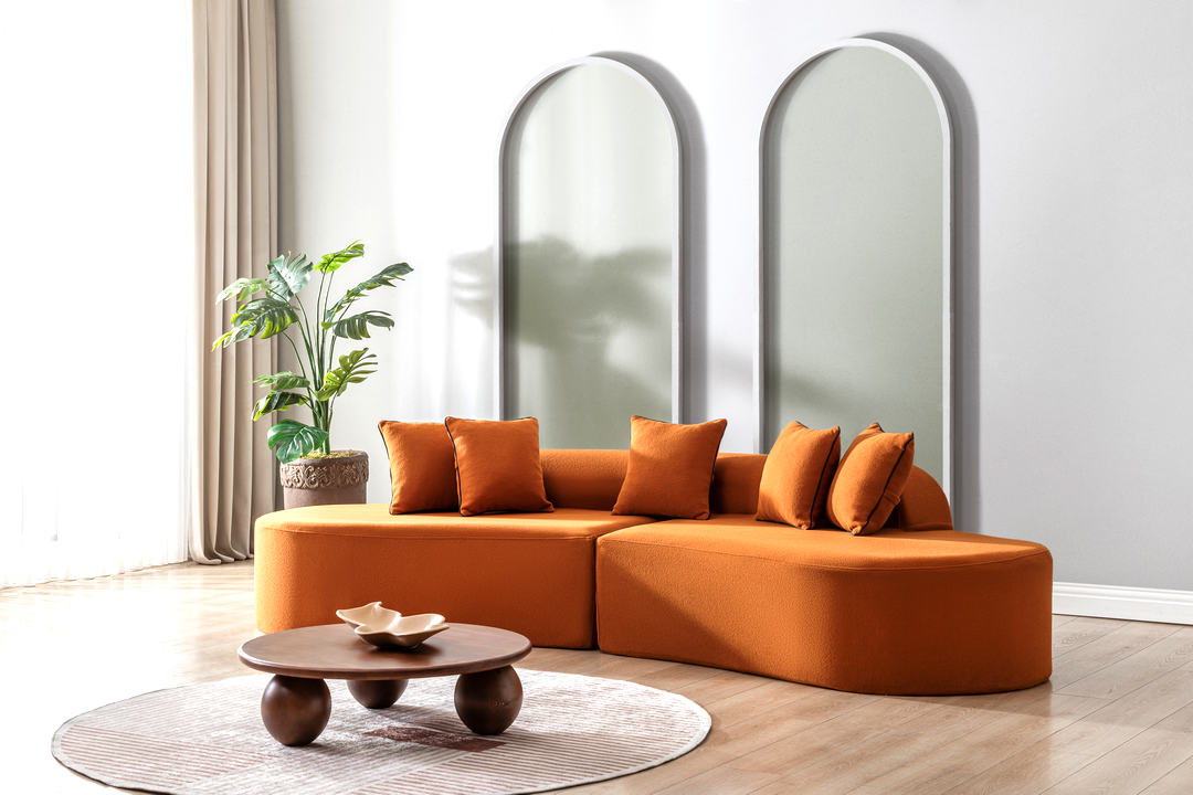 Modern Cloud Sectional Couches for Living Room, Orange Modular Sofa with Ottoman, No Assembly Needed, L Shaped Sectional Couch, Boneless Chaise Lounge