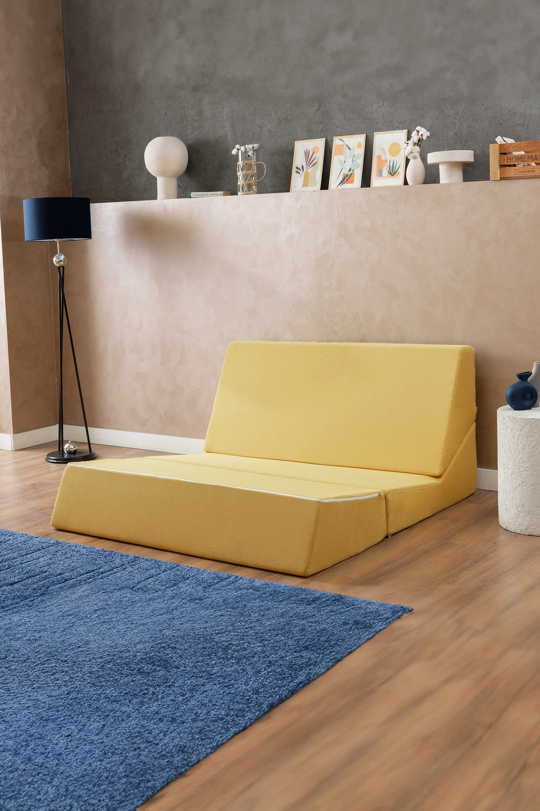 Thanks to its unique design, It has 3 functions, you can use it as livingroom 2 seater couch, or as floor sofa / Playstation TV floor couch or floor bed