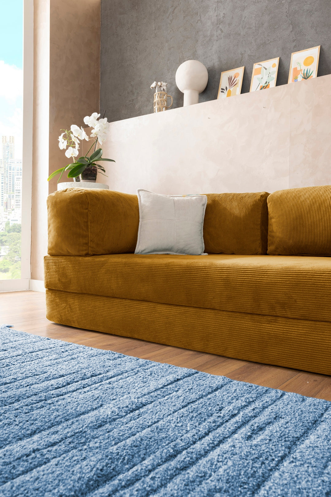TEDDY is a sofa bed, in accordance with the simple, classic meaning. He has no legs, handles or advanced mechanical constructions. Instead, he gives the softest bear hugs and easily transforms into a large bed.