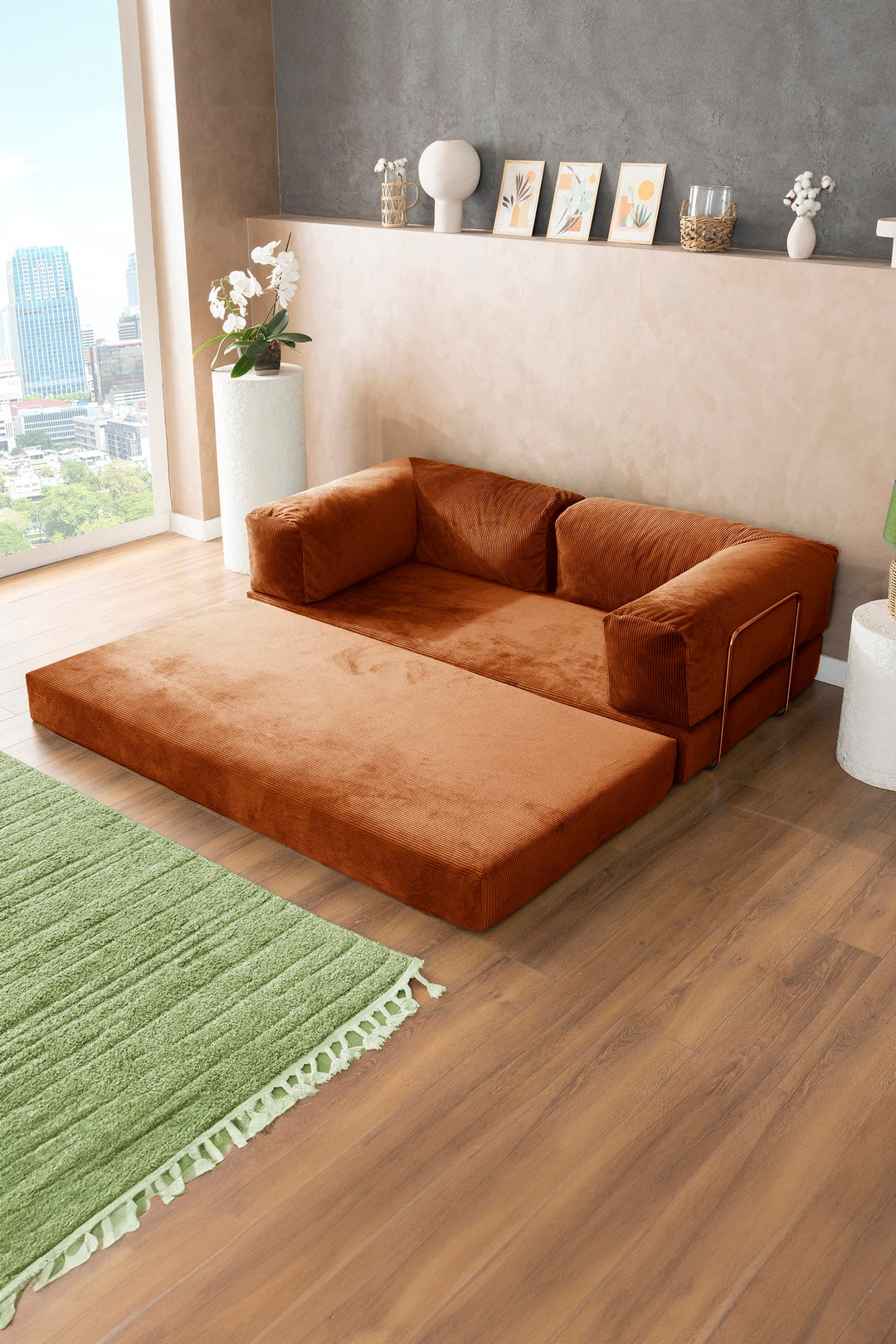 TEDDY is a sofa bed in the simple, classic sense. It has no legs, handles or advanced mechanical constructions. Instead, it gives the softest bear hugs and easily converts into a large bed.